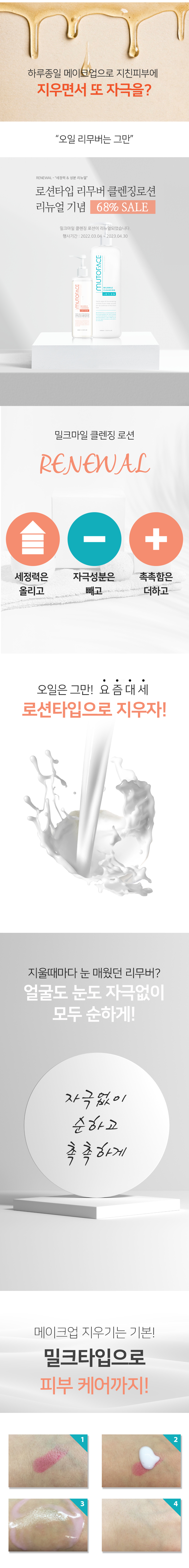 1. 건조한 손에 2펌프 (3g)를 얼굴에 바릅니다. 2. 얼굴전체를 부드럽게 마사지 하여 메이크업 및 유분을 지워줍니다. 3. 스폰지 또는 티슈로 닦아냅니다. 4. 폼클린저로 마무리 합니다.