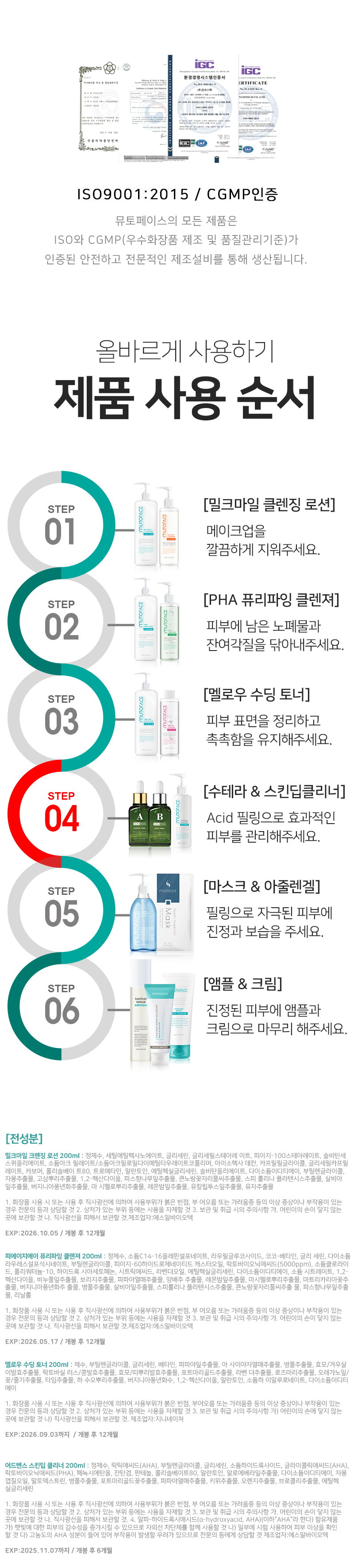 제품 주요 사양 (피부타입, 색상(호, 번) 등)